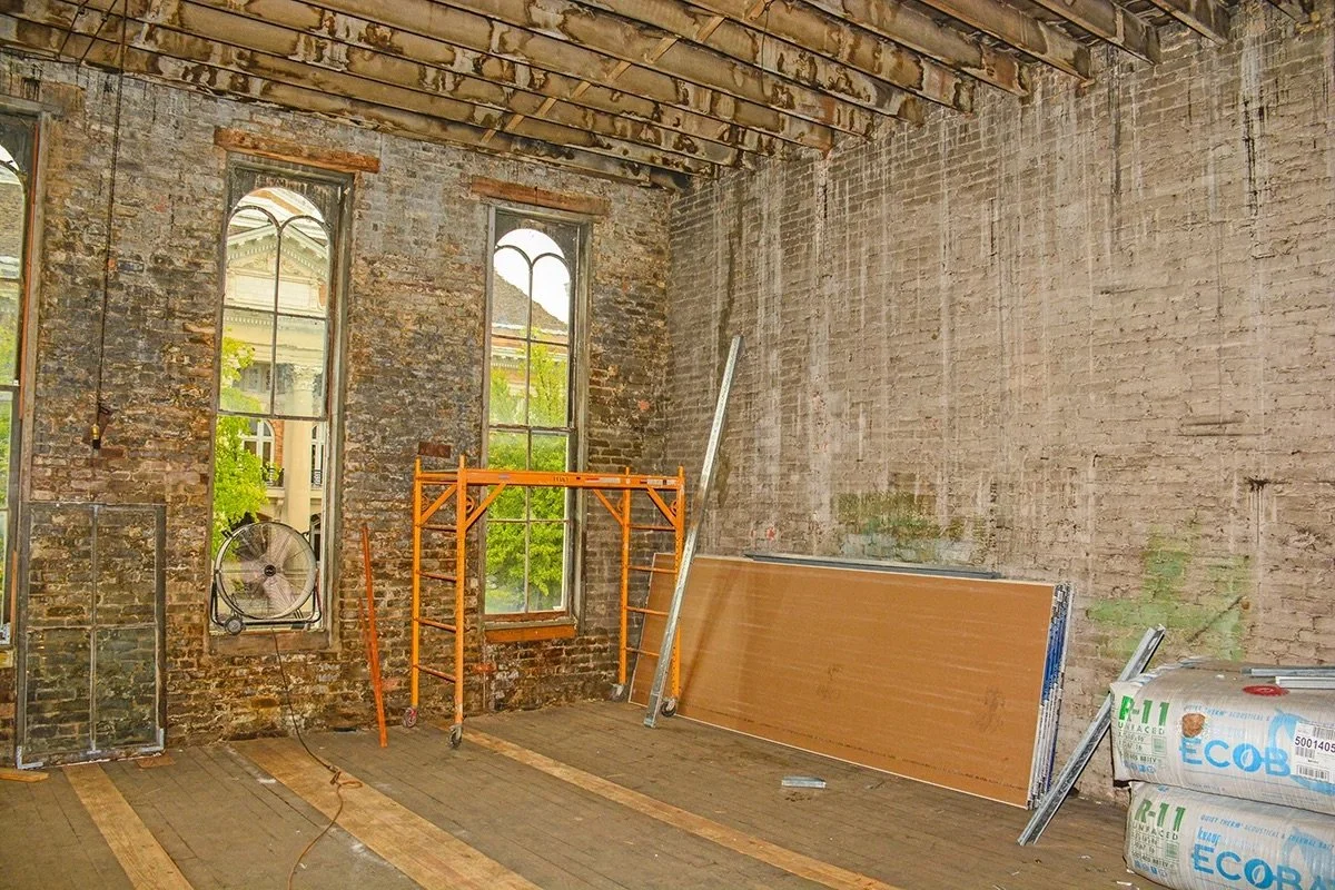 The project was not without its challenges. The walls of the building were three bricks thick and one of the walls had a large hole in it. Fortunately, the Brindley crew was able to retrieve the bricks inside the hole, so the repair could be made using original materials. There was also a large safe that had to be removed from the building and some of the flooring was not safe to walk on until it was shored up. With older buildings, you never know what you are going to find when you start renovating.