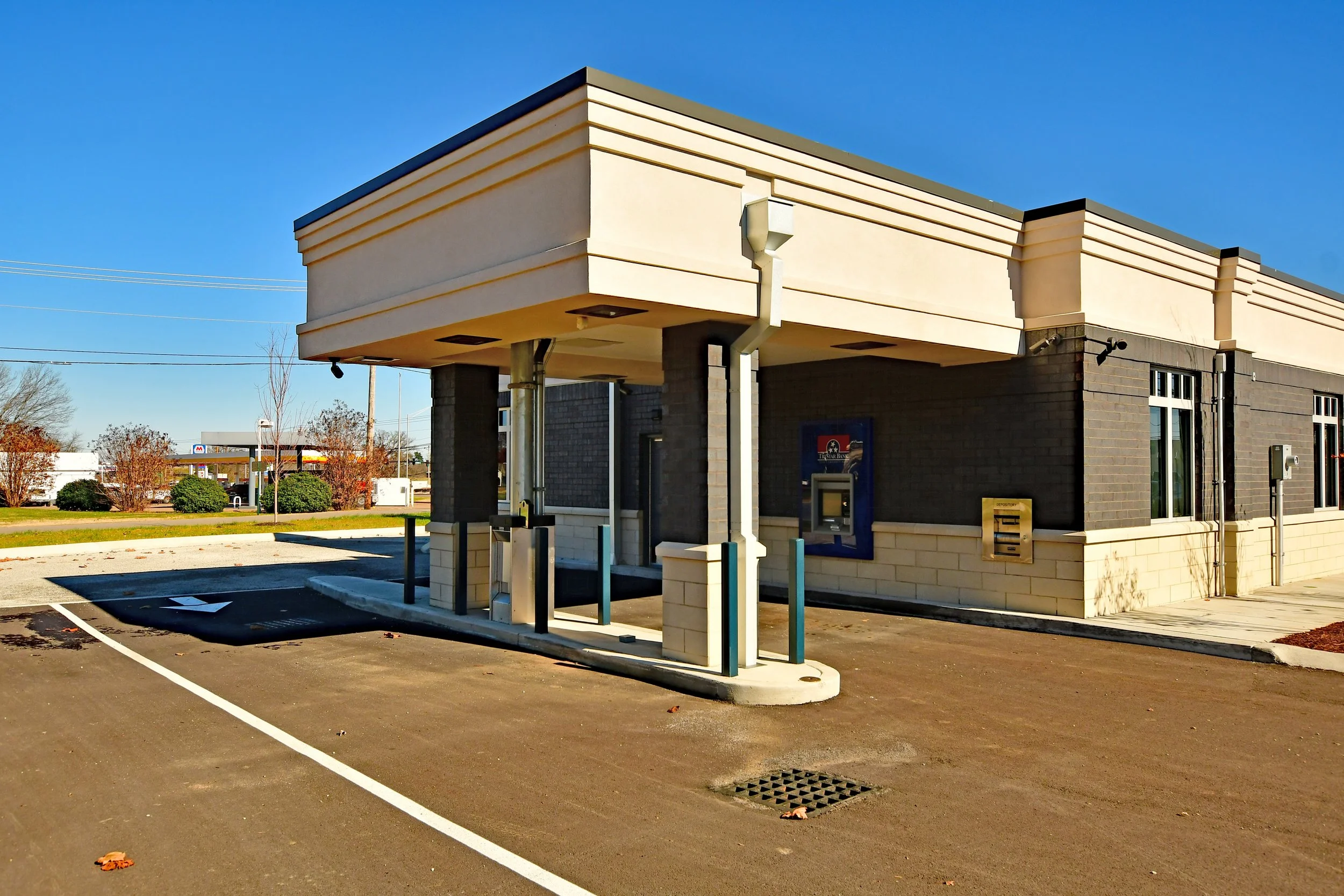 The building is a building with a concrete slab, masonry and EFIS exterior walls with sheetrock interior walls and sheetrock and acoustical ceiling systems. The building also has a two bay drive-thru. The exterior paving is impervious concrete paving.